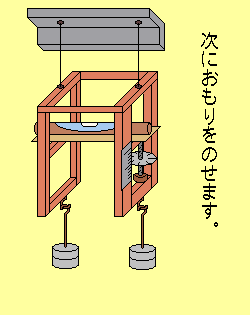さらに、右側だけに適当なおもり(たとえば1kg)を加え、 再びつまみを回し、水準器を水平にする。 ものさしとダイヤルの関係からその位置 Z1 を読む。 以下同様におもりを1個ずつ増加してその度ごとに水準器を調節し、 ものさしとダイアルの位置から、Z2・Z3・Z4・Z5を読み取る。 ただし、弾性の限界を超えない範囲で加重をやめなければならない。 →実験方法5へ →実験方法3へ →サールの実験へ