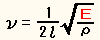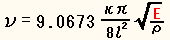 (両端自由、基本振動の場合)(π:円周率、κ:断面の回転半径、l:長さ、ρ:密度、E:ヤング率)