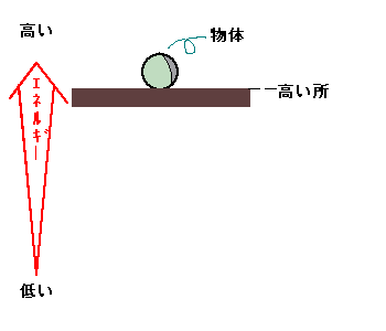力学的に言って高い所にある物体は,低い所にある物体よりも不安定と言える。なぜなら,高い所にある物体は支えがなくなると安定な位置である低い所に向かって自発的に落下しはじめるからである。これを「エネルギー」的に表現すると,エネルギー的に高い物はエネルギー的に低い所へ自発的に運動する傾向があると言える。さらに,ここで言う「エネルギー」とは当然「位置エネルギー」のことである。したがって・・・