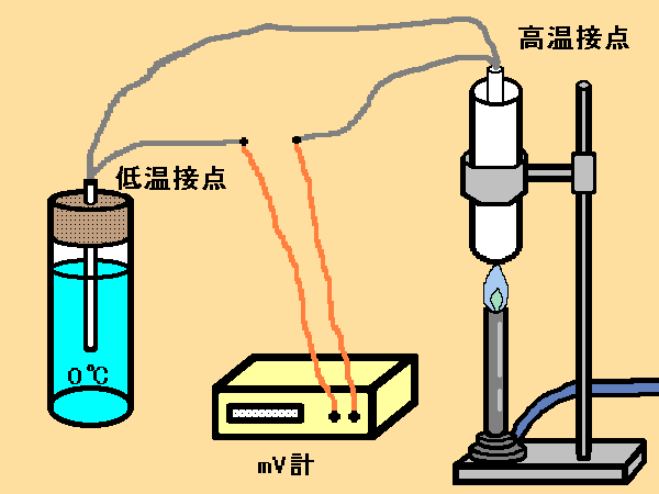 熱電対について理解すること。クロメル−アルメル熱電対を使ってスズの融点を求めること。インターネットを活用して熱電対の歴史的背景や関連事項について学ぶこと(実験準備室にて)。