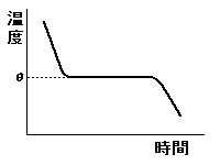 図 20−3のように,クロメル−アルメル熱電対の低温接点をジュワーびん(水と氷の共存状態で0℃を保つこと)に入れる。高温接点とスズが入ったタンマン管をガスバーナーで熱し,スズを融解させる。スズが融解し終わったら,炎をとめ,起電力を30秒ごとに測定する。 較正曲線よりそれぞれの起電力に対する温度を読みとり,冷却曲線を描く(図 20−4 )。 液相→固液共存→固相の変化があるので,固液共存の時の一定温度がスズの融点θである。 スズは高温になっているので取り扱いに注意すること。実験終了後は高温接点をスズの中に入れたままにしておくこと。ジュワーびんの中の水は捨てて,逆さにしておくこと。