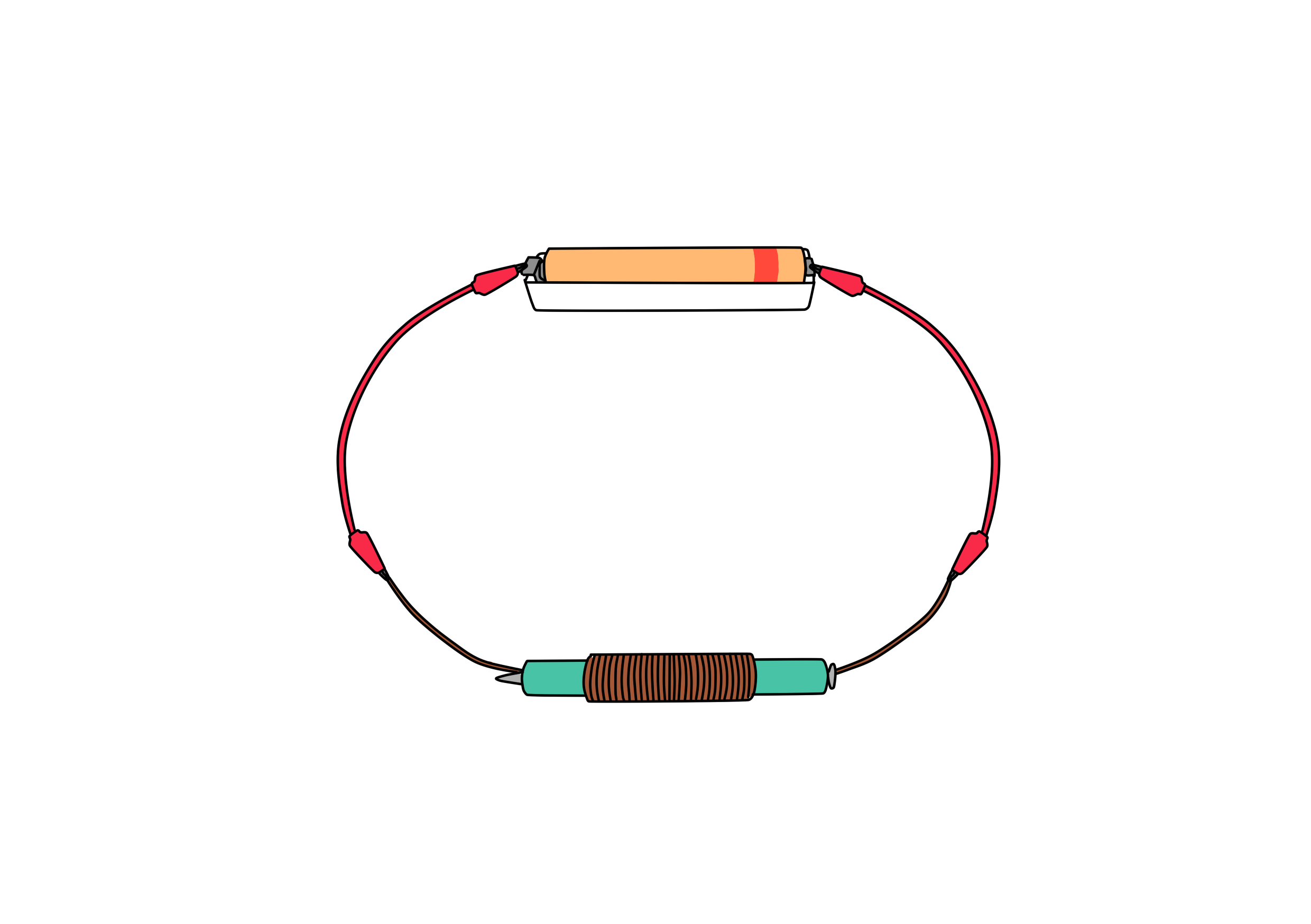 | @ | 電磁石と乾電池を導線でつなぎます。 | |